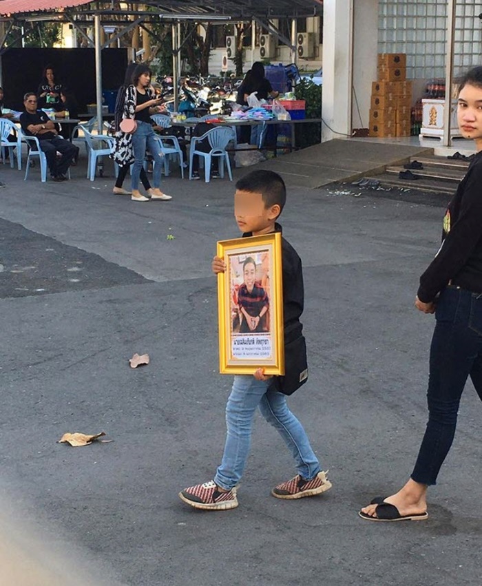 ถือรูปคุณพ่อในพิธีฌาปนกิจ โดยน้องข้าวปั้นมีความเข้มแข็ง ไม่ร้องไห้