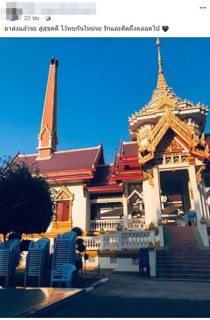 ด้านอดีตแฟนสาวของโก้ ได้มองรูปของโก้ ที่ถ่ายกับลูกชายด้วยความเศร้า พร้อมโพสต์ข้อความครั้งสุดท้ายว่า "มาส่งแล้วนะ สู่สุคติ ไว้พบกันใหม่นะ รักและคิดถึงตลอดไป"