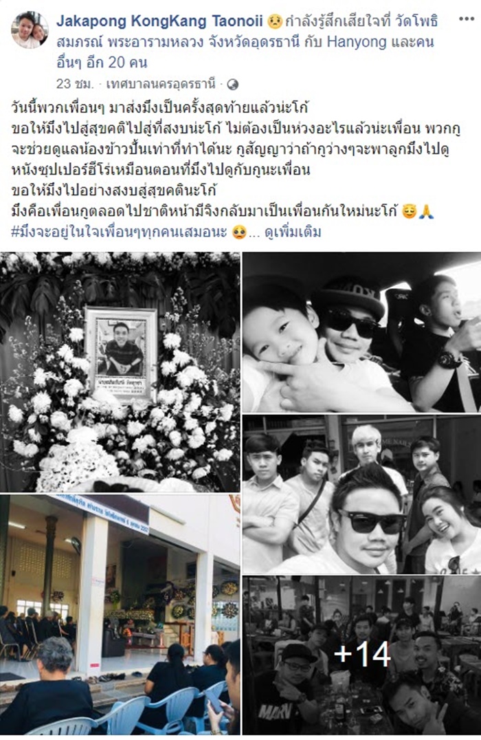 ส่วนเพื่อนสนิทของโก้ ได้โพสต์ข้อความอาลัยเป็นครั้งสุดท้ายว่า "วันนี้พวกเพื่อน ๆ มาส่งมึงเป็นครั้งสุดท้ายแล้วนะโก้ ขอให้มึงไปสู่สุคติ ไปสู่ที่สงบนะโก้ ไม่ต้องเป็นห่วงอะไรแล้วนะเพื่อน
