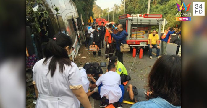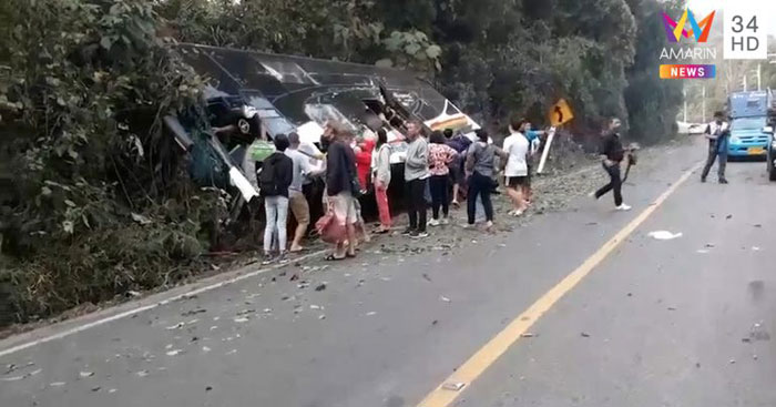 รถบัสนำคณะนักปั่นเดินทางแข่งที่ จ.น่าน รถเสียหลักหวิดตกเหว เจ็บ 15 สาหัส 1 เนื่องจากหักรถได้ทันทำให้ไม่เกิดเหตุสลด