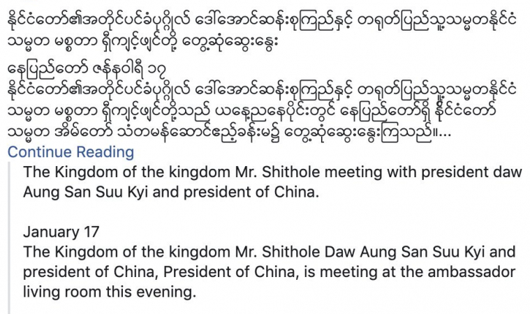 ทั้งนี้ เมื่อกดดูคำแปลจากข่าวดังกล่าวที่เป็นภาษาเมียนมา แปลเป็นภาษาอังกฤษ พบว่ามีการแปลชื่อนายสี จิ้นผิง เป็น Mr.Shithole (นายรูทวาร)