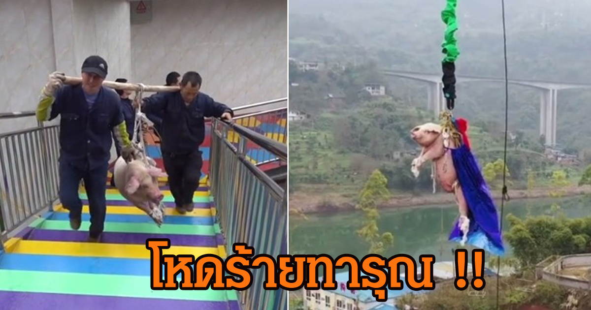 เปิดคลิปน่าสงสาร สวนสนุกจีนจับหมูโดดบันจี้จั๊มพ์ เพื่อฉลองบันจี้จั๊มพ์เปิดใหม่ ก่อนส่งไปฆ่า สุดท้ายโดนประณามยับ ชาวเน็ตรับไม่ได้ ชี้โหดร้ายและทารุณสัตว์ ล่าสุดต้องออกมาขอโทษ