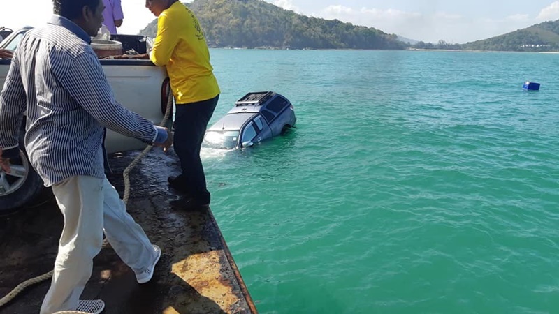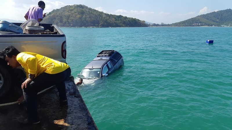 เกิดเหตุรถยนต์ตกจากเรือร่วงลงไปในทะเล ระหว่างขึ้นเรือโดยสารข้ามฟากจากเกาะยาว เข้าท่าเรือเกาะสิเหร่ ภูเก็ต คาดไม่ได้ใส่เบรกมือ ประกอบกับคลื่นลมแรง