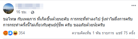 ทั้งนี้ หลังมีการแชร์เรื่องราวดังกล่าวออกไป ก็มีชาวเน็ตจำนวนมากเข้ามาแสดงความคิดเห็น พร้อมเปิดวาร์ปเฟซบุ๊กของผู้ชายที่ทำร้ายเด็กผู้หญิง พร้อมเข้าไปต่อว่าจนเจ้าตัวโพสต์เฟซบุ๊กขอโทษกับเหตุการณ์ที่เกิดขึ้น โดยบอกว่าได้ทำลงไปเพราะความรู้เท่าไม่ถึงการณ์ พร้อมระบุว่า การกระทำของตนไม่เกี่ยวกับศูนย์กู้ชีพแต่อย่างใด