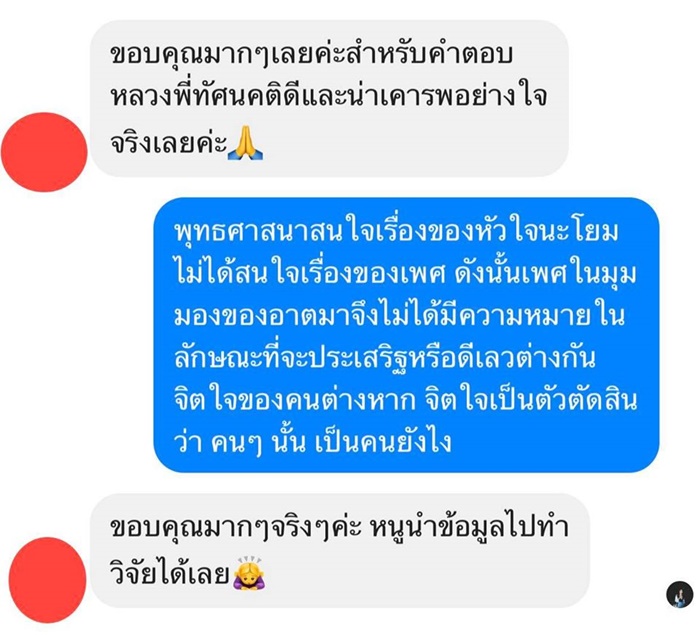 ป.ล. อาตมามองว่า การบอกว่า คนชอบพอเพศเดียวกันเลวกว่าสัตว์เดรัจฉาน แบบนี้ ฟังดูทำร้ายจิตใจคนอื่นมาก ไม่ต่างจากการตีตราและการพิพากษาตัดสินคนอื่นจากชนชั้นวรรณะของเขา อาตมามั่นใจว่า พุทธศาสนาไม่มีคำสอนที่ตกขอบเช่นนี้ กมฺมํ สตฺเต วิภชติ การกระทำต่างหากที่แบ่งแยกคน ดีเลว เกี่ยวอะไรกับการรักใคร่ชอบพอในคนเพศเดียวกัน ถ้าใครมีเหตุผลที่ดีกว่า ก็ช่วยแย้งอาตมาที