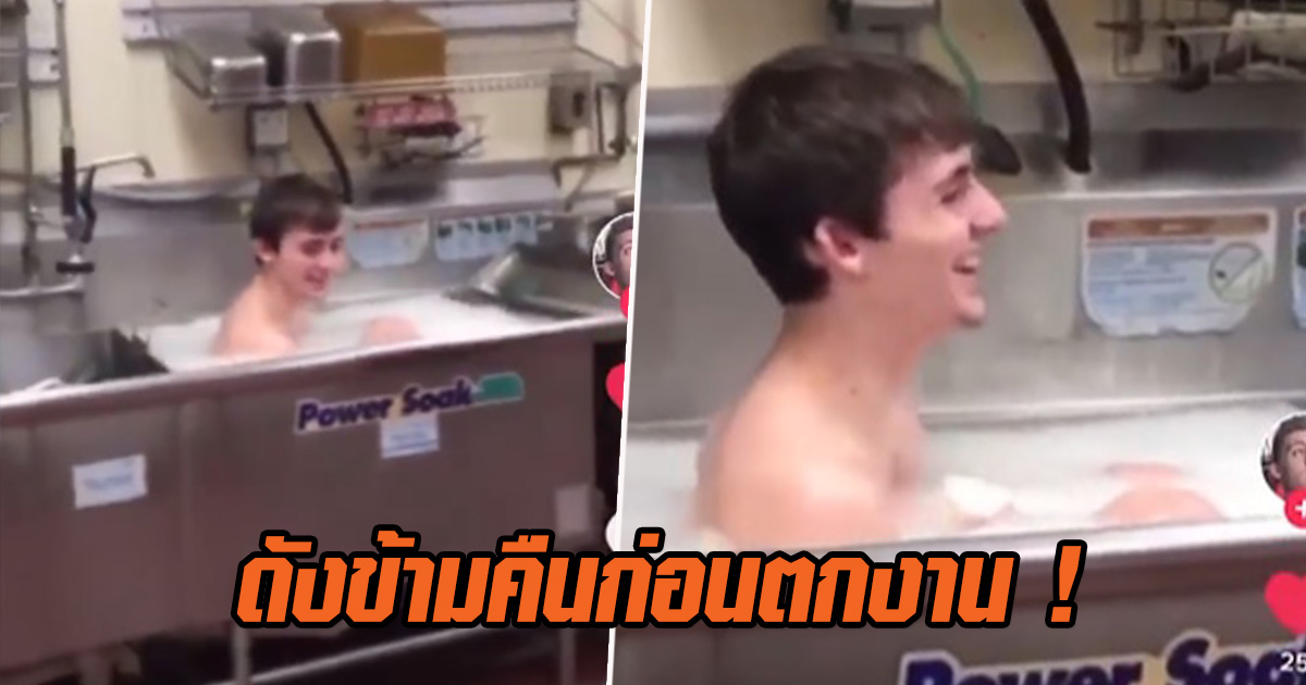หนุ่มลูกจ้างร้านอาหารพิเรนทร์ แก้ผ้าลงแช่น้ำเล่นในอ่างล้างจาน โชว์โซเชียลเรียกกระแส ดังข้ามคืนก่อนตกงาน ท้ายที่สุดโดนไล่ออก