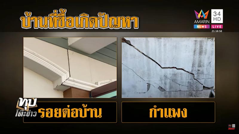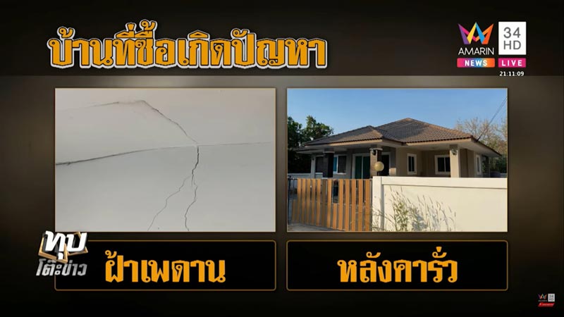 แต่ตนซื้อบ้านและอยู่ได้เพียง 4 ปี บ้านก็เริ่มมีปัญหา โครงสร้างบ้านแตกร้าว ทรุดตัว ฝ้าเพดานหย่อนพร้อมจะร่วงลงมาตลอดเวลา ประตูกับหน้าต่างล็อกไม่ได้ มากไปกว่านั้นโครงสร้างที่เป็นปูนมีรอยแตกร้าวขนาดใหญ่ พร้อมจะพังได้ทุกเมื่อ ซึ่งทั้งหมดต้องซ่อมแซมเอง เพราะเคยทวงถามกับนางอนงค์ไปแล้ว แต่ถูกปฏิเสธ โดยอ้างว่าสัญญาทุกอย่างจบไปแล้ว มีการซื้อขายเรียบร้อยแล้ว จึงไม่ใช่หน้าที่มาซ่อมแซมให้ แถมพูดจาเหยียดหยามตนด้วย ตนจึงทำได้เพียงแค่อยู่ไปซ่อมไป และไม่รู้ว่าวันไหนจะพังถล่มลงมาทั้งหลัง