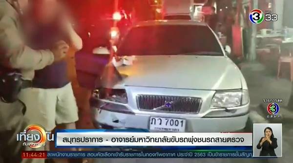 อาจารย์มหาวิทยาลัย เมาแล้วขับพุ่งชนรถสายตรวจล้มเจ็บ 3 โทร. หาน้องสาวช่วยด่าตำรวจ เมื่อตรวจค่าแอลกอฮอล์ พบว่าเกินมาตรฐาน