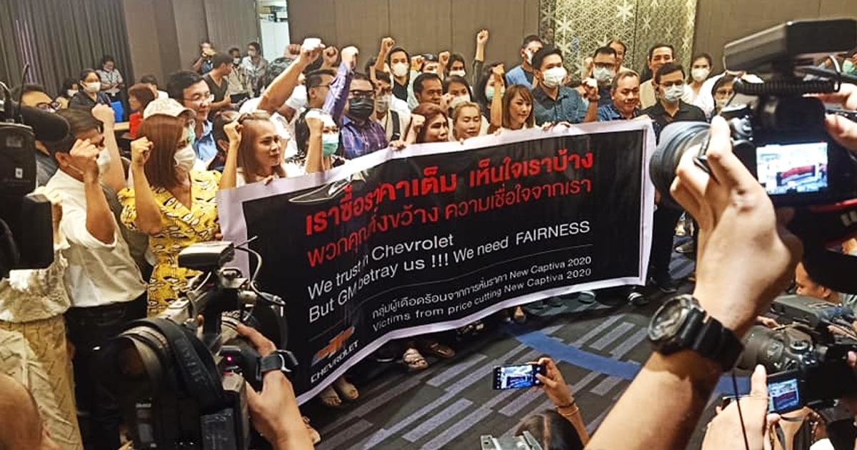 กลุ่มลูกค้าที่ซื้อรถเชฟโรเลต ราคาเต็ม รวมตัวร้องสำนักงานใหญ่ หลังบริษัทเทขายราคาลด 50% เดินหน้าขอส่วนต่างคืน เจ็บปวดใจต้องจ่ายเต็มราคา