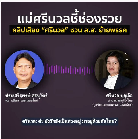 อนาคตใหม่ ฟาดอีก ปล่อยคลิปอ้างเป็นศรีนวล บุญลือ ชวนอดีต ส.ส. ย้ายซบ หลังถูกยุบพรรค พร้อมคำถามเด็ด แล้วเขาได้อะไรกันบ้างแม่ศรีนวล
