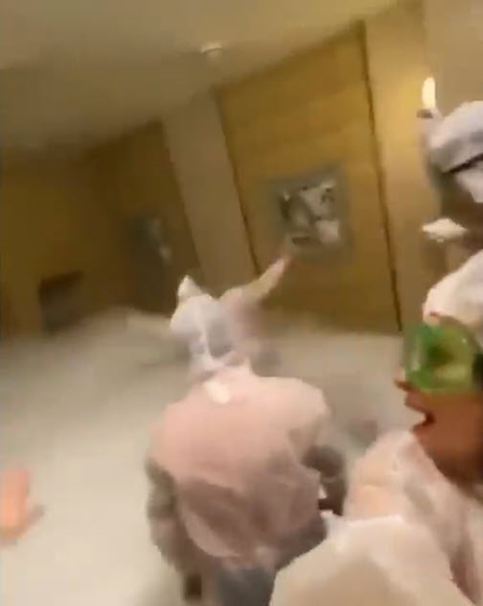 ในวันที่ 28 กุมภาพันธ์ ซึ่งเป็นวันคล้ายวันเกิดของเอคาเทรินา เธอได้โพสต์คลิปลงบนอินสตาแกรม แชร์บรรยากาศปาร์ตี้ที่จัดขึ้นภายในห้องซาวน่าในกรุงมอสโก ตอนแรกทุกคนสังสรรค์เฮฮากันตามปกติ จนกระทั่งเปลี่ยนโหมดให้ปาร์ตี้เร้าใจยิ่งขึ้น โดย วาเลนติน ดิเดนโก้ สามีของเอคารินา ได้เทดรายไอซ์ 25 กิโลกรัม ลงในสระว่ายน้ำ เพื่อสร้างบรรยากาศตื่นเต้นเร้าใจ