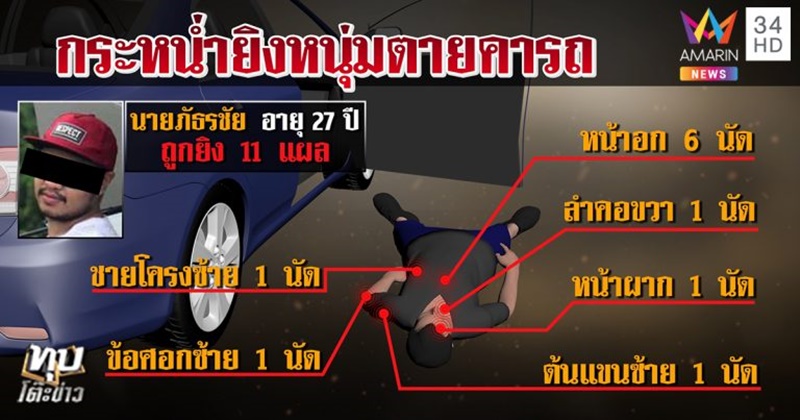 จากกรณีกลางดึกที่ผ่านมา เกิดเหตุมีคนถูกยิงเสียชีวิตริมถนนหน้าสถานบันเทิงแห่งหนึ่ง ถนนราชพฤกษ์ จ.นนทบุรี โดยผู้เสียชีวิตอยู่ภายในรถ ทราบชื่อคือ นายภัธรชัย หรือ เปอร์ อายุ 27 ปี มีบาดแผลถูกยิงเข้าร่างกายจำนวน 11 แผล บริเวณกระจกฝั่งคนขับ พบรูกระสุน 5 รู บนพื้นถนนพบปลอกกระสุนปืนขนาดต่าง ๆ กระจายเกลื่อนนั้น