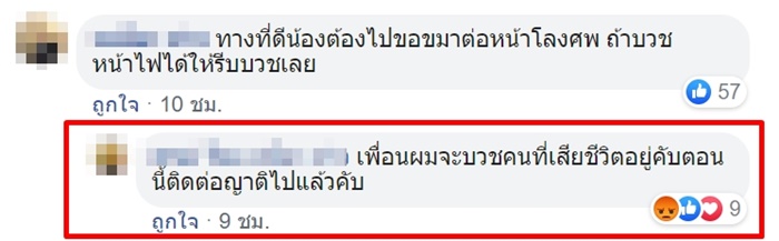 อย่างไรก็ตาม เพื่อนของวัยรุ่นรายนี้ ได้มีการเข้ามาตอบโต้คอมเมนต์คนโจมตี โดยระบุว่า เพื่อนติดต่อญาติผู้เสียชีวิตแล้ว และเตรียมจะบวชให้ผู้เสียชีวิตด้วย