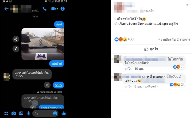 และได้มีเฟซบุ๊กหนึ่งแคปข้อความที่สนทนากับวัยรุ่นรายนี้ออกมาแฉ ลักษณะคล้ายไม่สำนึกกับเหตุการณ์ที่เกิดขึ้น