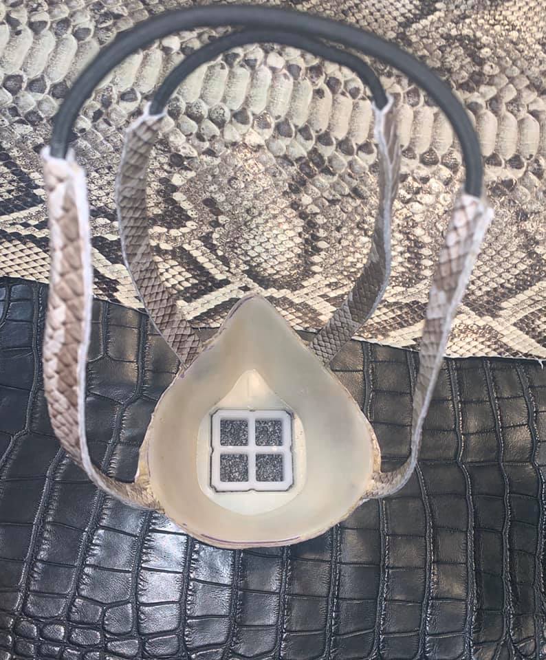 สำหรับหน้ากากอนามัยดังกล่าวทำจากซิลิโคนซอฟต์เชลล์กันแพ้ประกอบกับหนังงูหรือหนังจระเข้ มาพร้อมตัวกรอง N95 ที่ตรงตามมาตรฐานทางการแพทย์ โดยจะมีสีและรูปแบบที่แตกต่างกันออกไป