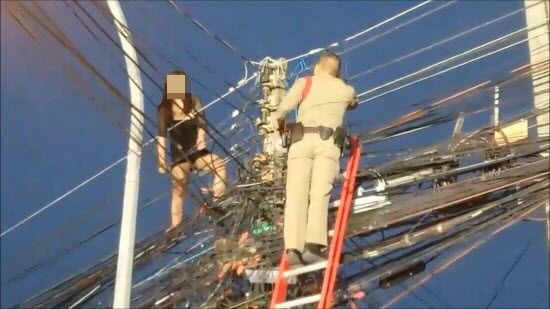 สาวสวยวัย 19 นั่งกินเหล้ากับเพื่อนข้ามคืน เช้ามืดเกิดสติหลุด วิ่งปีนเสาไฟฟ้า บอกจะกลับไปอยู่กับยาย เจ้าหน้าที่วุ่นทั้งเมือง ต้องเร่งตัดไฟ กล่อมนาน 2 ชั่วโมง