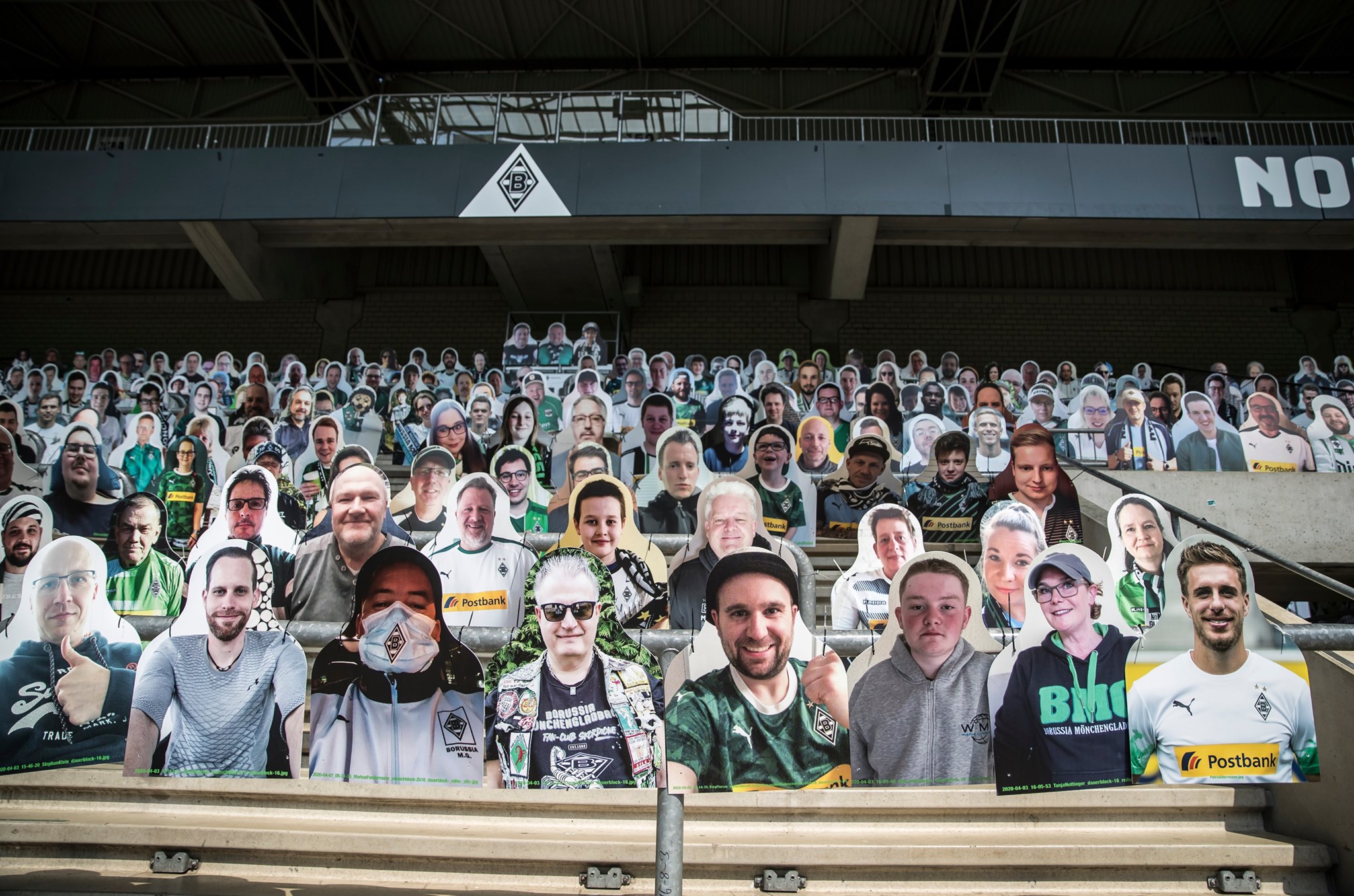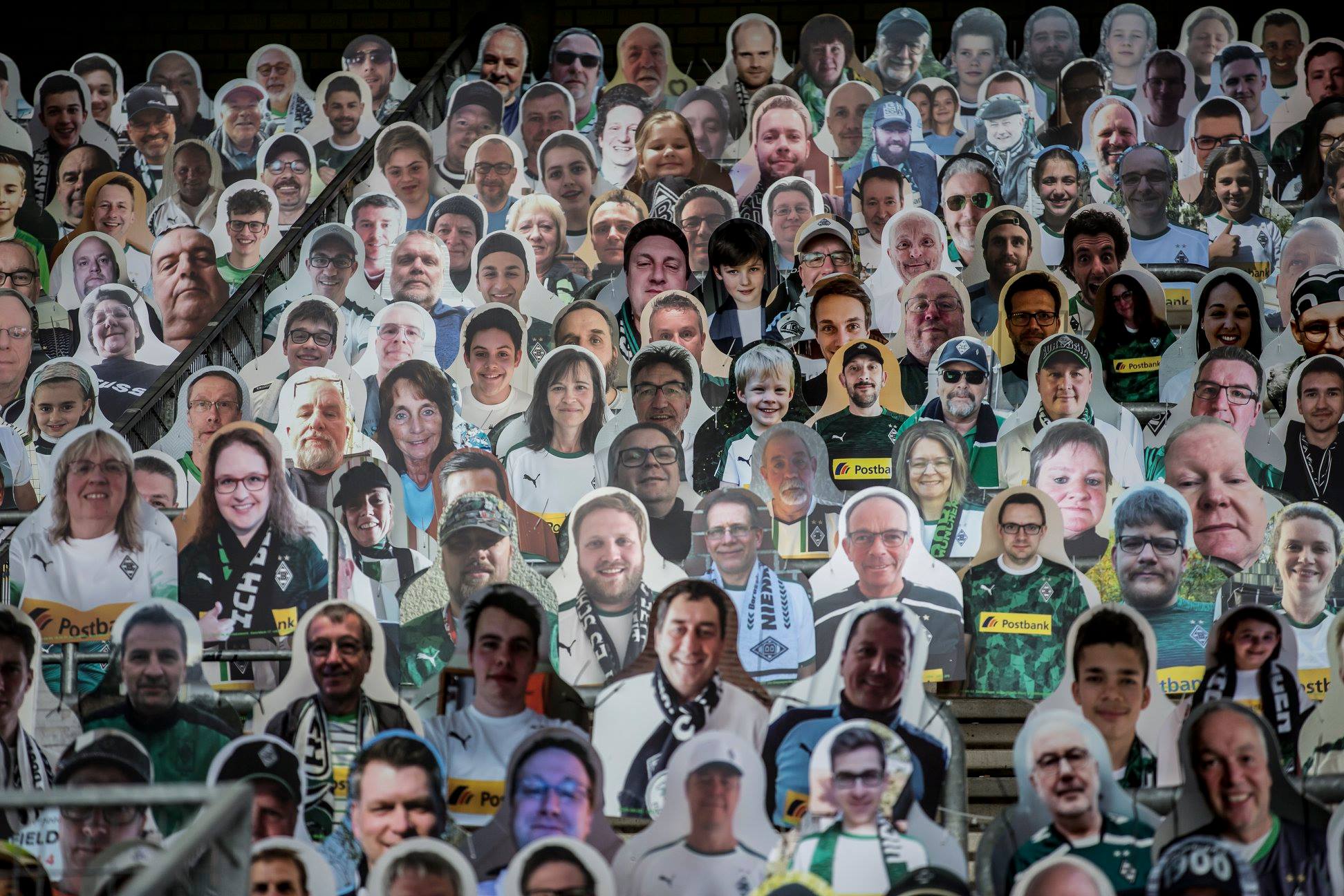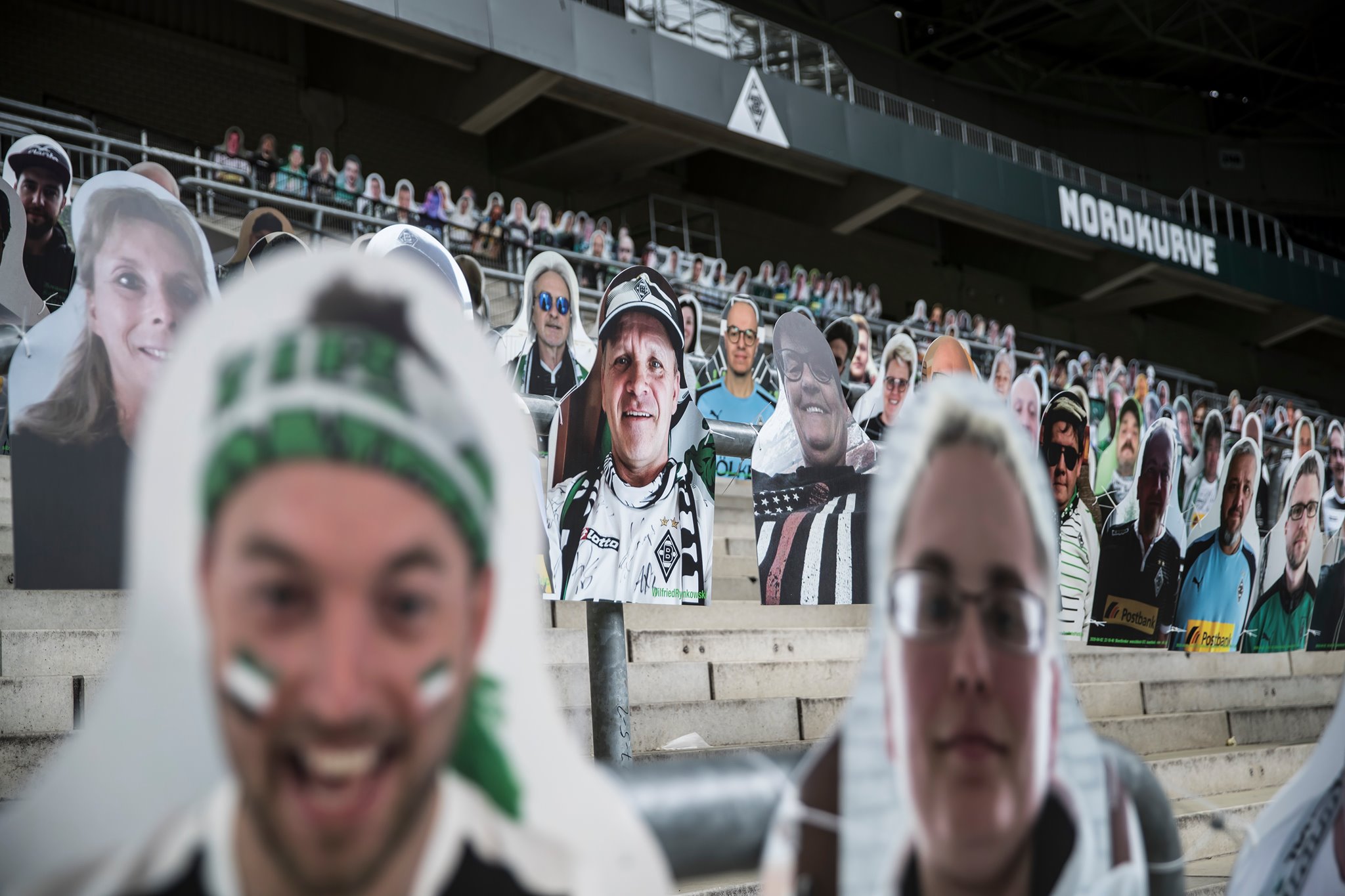 เมื่อวันที่ 6 พฤษภาคม ที่ผ่านมา แฟนเพจฟุตบอล Borussia Mönchengladbach ทีมดังจากเยอรมนี ได้โพสต์ภาพคัตเอาต์หน้ากองเชียร์ของแฟนบอลกว่า 4,500 ชิ้น และกำลังทยอยเพิ่มอีกกว่า 12,000 ชิ้น เพื่อนำไปวางไว้ในสนามบนอัฒจันทร์บริเวณหลังประตู เป็นกำลังใจให้กับนักฟุตบอลทีมของตัวเอง
