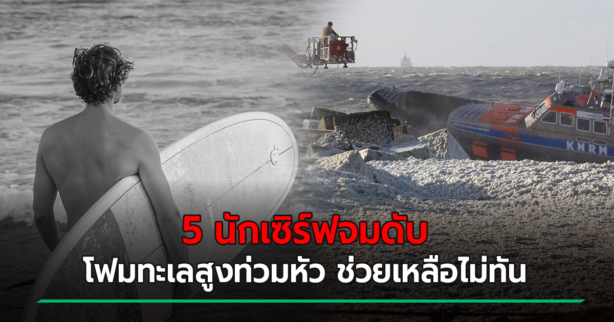 สลด 5 นักเล่นเซิร์ฟถูกทะเลกลืนร่าง ดับสลด หลังเกิดโฟมทะเลสูงเกือบเท่าตัวคน ขวางปฏิบัติการกู้ภัย ด้านนายกเทศมนตรีร่วมอาลัยโศกนากฏกรรม สั่งสืบหาความจริง เกิดอะไรขึ้นกันแน่ ชี้เหยื่อเป็นนักเล่นเซิร์ฟที่มีประสบการณ์