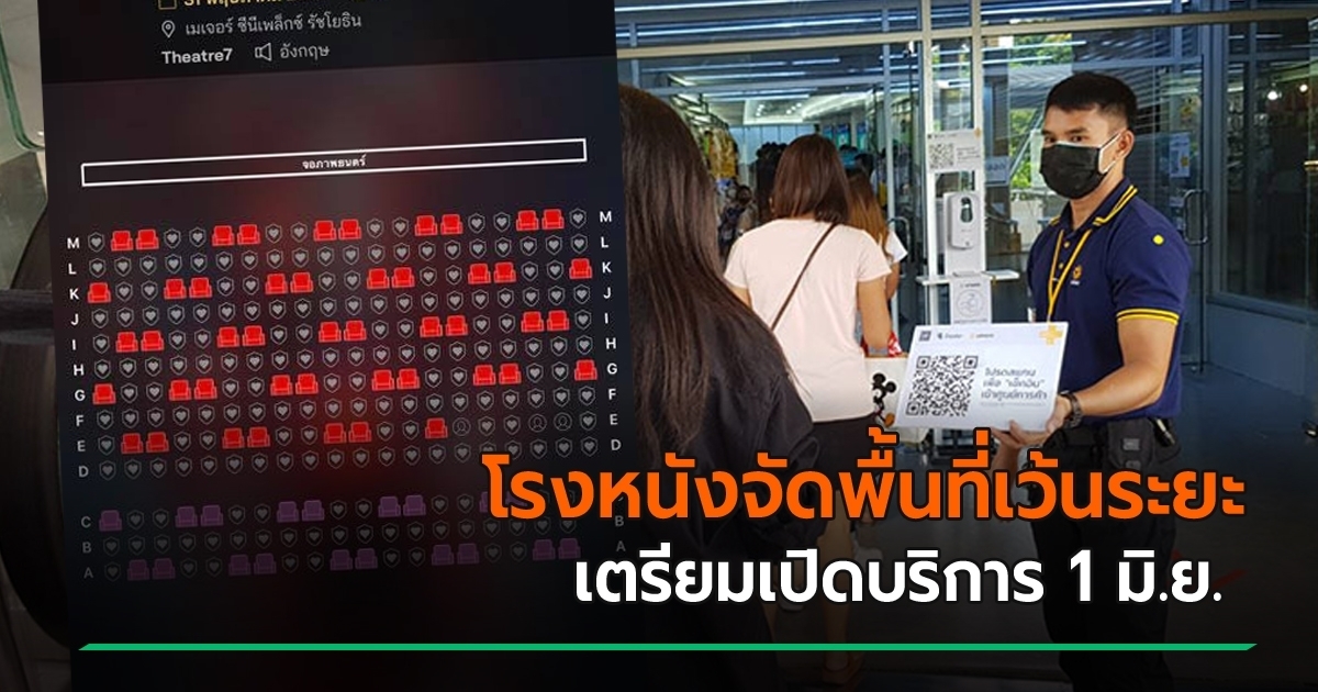 โรงภาพยนตร์ เตรียมพื้นที่เปิดให้บริการ 1 มิถุนายน 2563 หลังประกาศปลดล็อกผ่อนปรนระยะ 3 จัดที่นั่งแบบเว้นระยะ 2 ต่อ 2 และ 1 แถว เว้น 1 แถว
