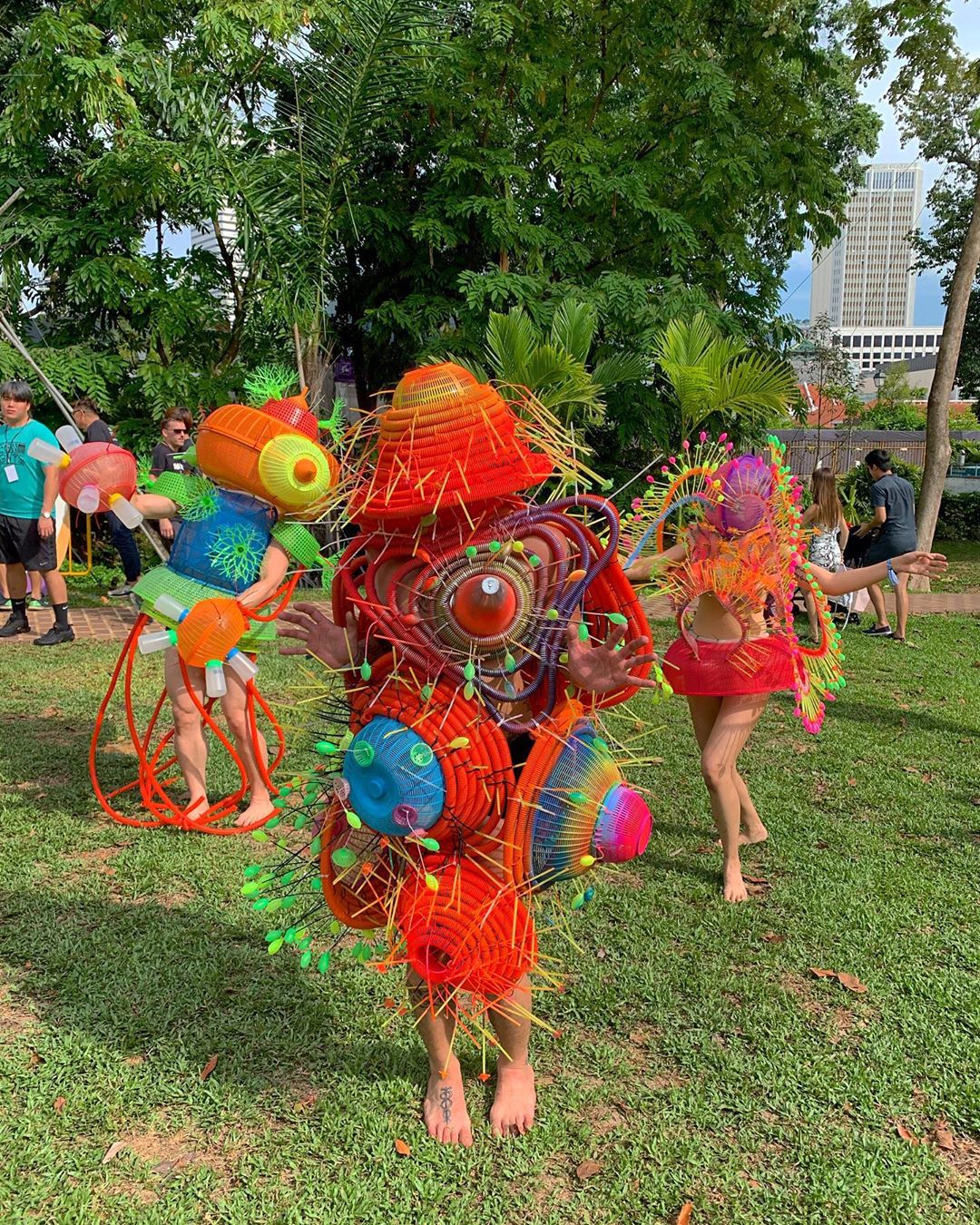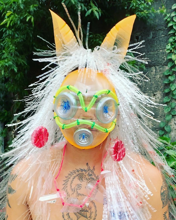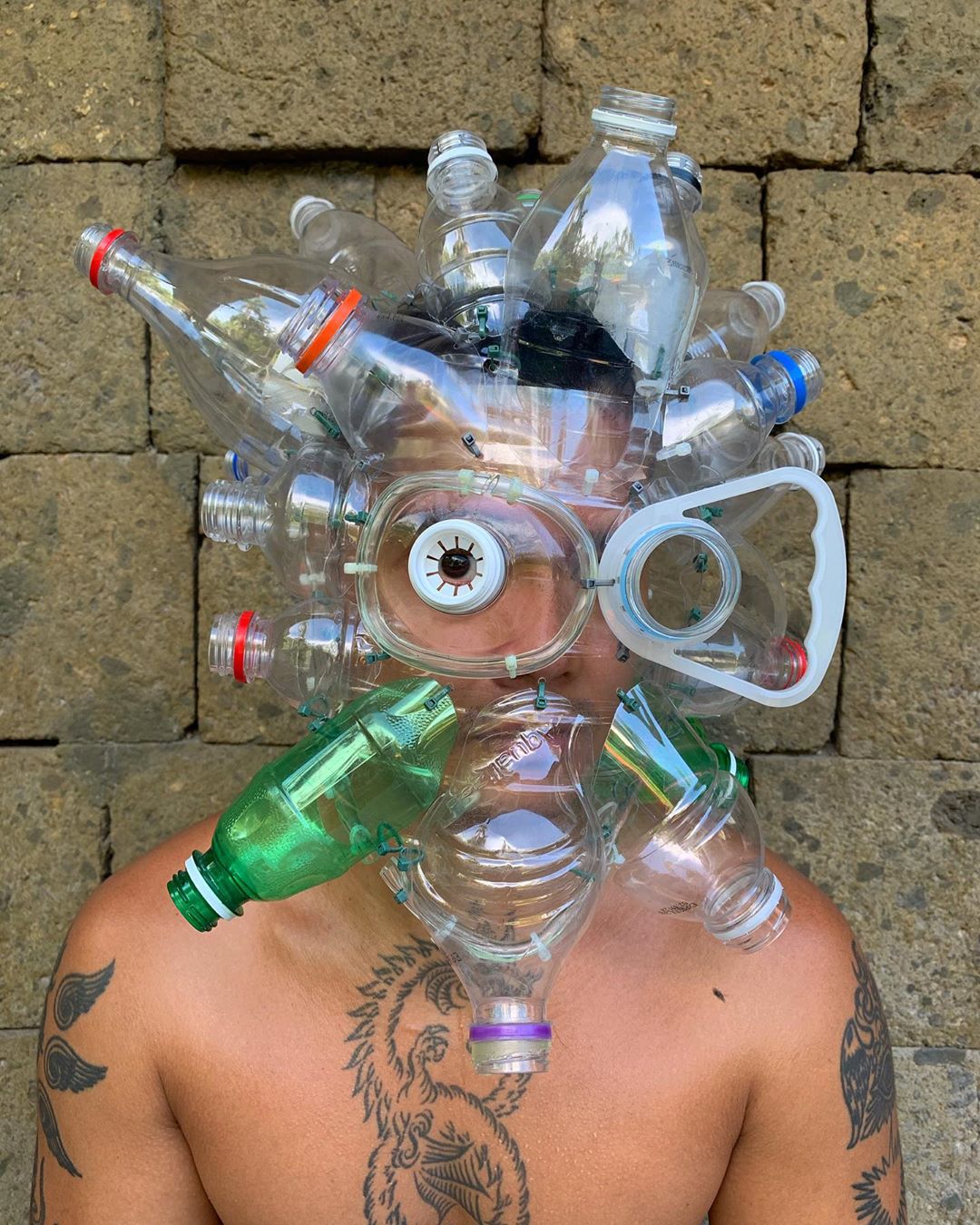 Leeroy New ศิลปินชาวฟิลิปปินส์ วัย 34 ปี ผู้สร้างสรรค์ผลงานทำอุปกรณ์พิเศษ เว้นระยะห่าง จากการรีไซเคิลขวดพลาสติก และวัสดุอื่น ๆ มาทำเป็นหน้ากาก และชุด ที่มีรูปแบบแปลก ๆ ไม่เหมือนใคร เพื่อให้ประชาชนตระหนักและฏิบัติตามมาตรการ Social Distancing ที่ทางสาธารณสุขออกมาประกาศขอความร่วมมือ ในช่วงเวลาที่ยังมีการระบาดของ COVID-19 เห็นแต่ละผลงานแล้วแปลกแหวกแนวดีจริง ๆ