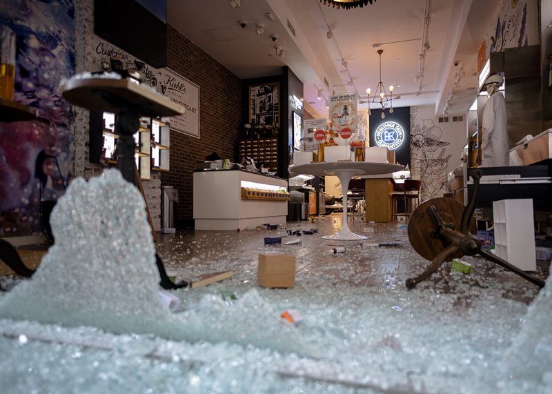 ส่วนสิ่งที่เจอในตอนนี้ ต้องแบ่งเป็น 2 กลุ่ม กลุ่มแรกคือ ผู้ประท้วงการเหยียดผิว และกลุ่มที่ฉวยโอกาสสร้างสถานการณ์ที่ไปปล้นร้านค้าต่าง ๆ ทั้งนี้ ถึงแม้ทางการจะจัดกำลังทหารมาดูแล แต่ก็เหมือนไม่สามารถควบคุมสถานการณ์ได้ ซึ่งร้านค้าบริเวณโดยรอบก็ได้รับความเสียหายจากกลุ่มคนที่ฉวยโอกาสทุบกระจกและขโมยของภายในร้านแทบทั้งหมด