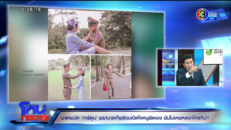 การ์ตูน : ค่ะ ตอนคุยกันแรก ๆ หนูไม่ได้บอกว่าเป็นพยาบาล แล้วทีนี้พอคบกันมา หนูก็ชวนพี่เขาไปถ่ายรูปเพื่อเก็บเป็นที่ระลึก ทีนี้เป็นประเด็นขึ้นมา พี่เขามารู้ทีหลังว่าหนูไม่ได้เป็นพยาบาล