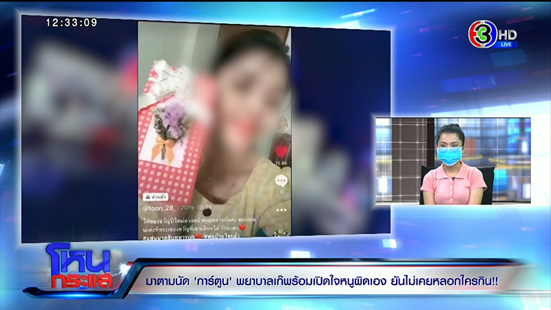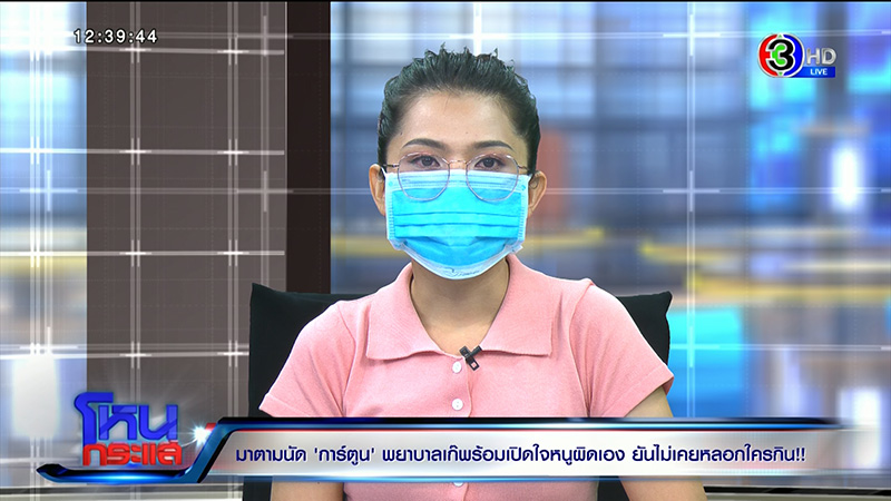 รายการโหนกระแส วันที่ 11 มิถุนายน 2563 "หนุ่ม กรรชัย กำเนิดพลอย" ในฐานะผู้ดำเนินรายการ ผลิตในนามบริษัท ดีคืนดีวัน จำกัด ออกอากาศทุกวันจันทร์-ศุกร์ เวลา 12.20 น. ทางช่อง 3 กดเลข 33 เปิดใจสัมภาษณ์ "การ์ตูน" หญิงสาวที่แอบอ้างเป็นพยาบาล ก่อนถูกแฉว่าหลอกทั้งทหาร ตำรวจ ได้เงินไปอื้อ