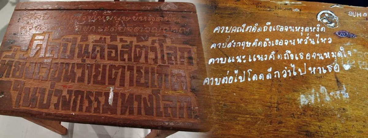 เฟซบุ๊กเพจ มานะ มานี ปิติ ชูใจ ได้เผยภาพผลงานจิตรกรรมบนโต๊ะเรียน จากฝีมือเหล่านักเรียนทั้งหลาย มีทั้งภาพวาดและคำคมเพียบ !! โต๊ะเรียนของใครสะอาดเนียนกริบ อย่าคิดว่ารอด โดนลิควิดละเลงเต็มโต๊ะแน่นอน และศิลปะบนโต๊ะเรียนบางอันก็เข้าขั้นพีคมาก ๆ สำหรับนักเรียนรุ่นใหม่ ดูแล้วอย่าเอาไปทำตามนะ