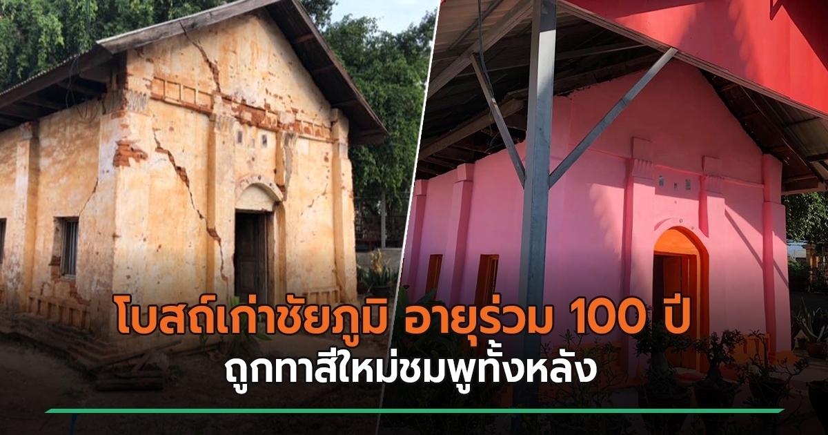 แห่แชร์ ภาพโบสถ์เก่า (สิม) โบราณสถานบ้านแก้ง จ.ชัยภูมิ อายุร่วม 100 ปี ถูกทำใหม่ทาสีชมพูทั้งหลัง กลบสถาปัตยกรรมอีสานอันงดงามหมดสิ้น พบอยู่ในรายชื่อรวบรวมของกรมศิลปากร แต่ยังไม่ขึ้นทะเบียน