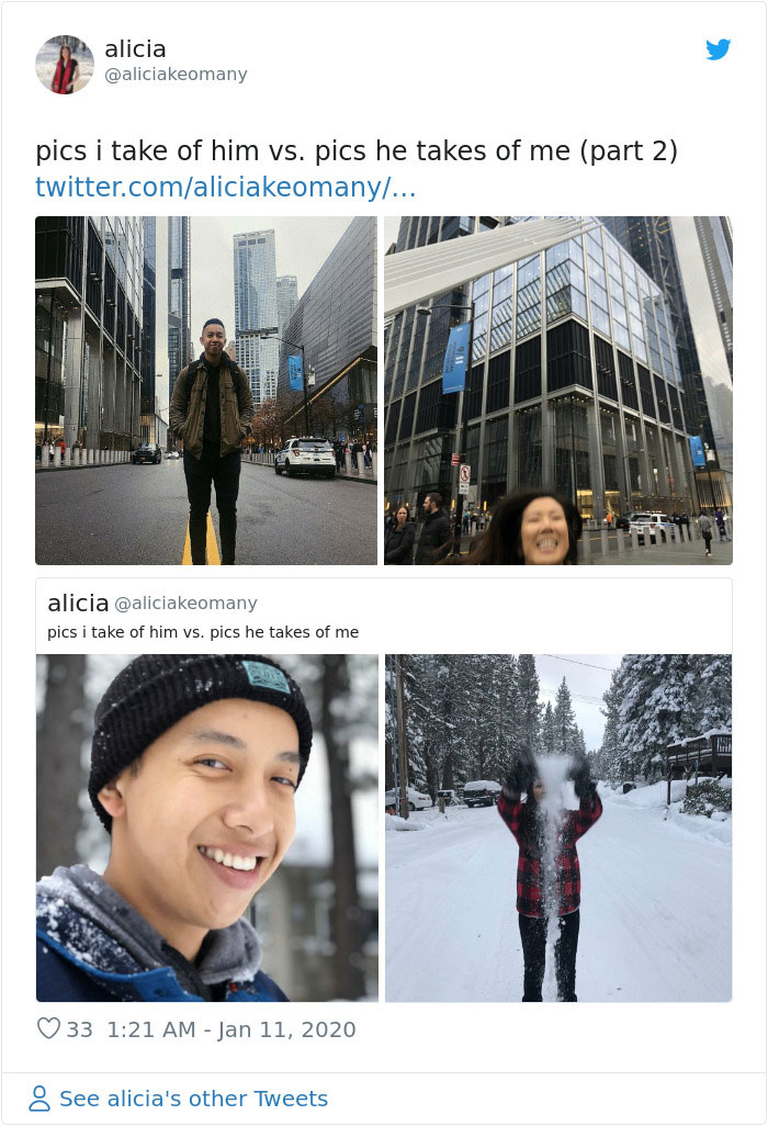 ชมภาพขำ ๆ จากผู้ใช้ Twitter ทั่วโลก ที่พร้อมใจกันนำผลงานถ่ายภาพให้แฟน VS ภาพที่แฟนถ่ายให้มาลง ก่อนกลายเป็นไวรัลอวดฝีมือถ่ายภาพคู่รักของตัวเอง