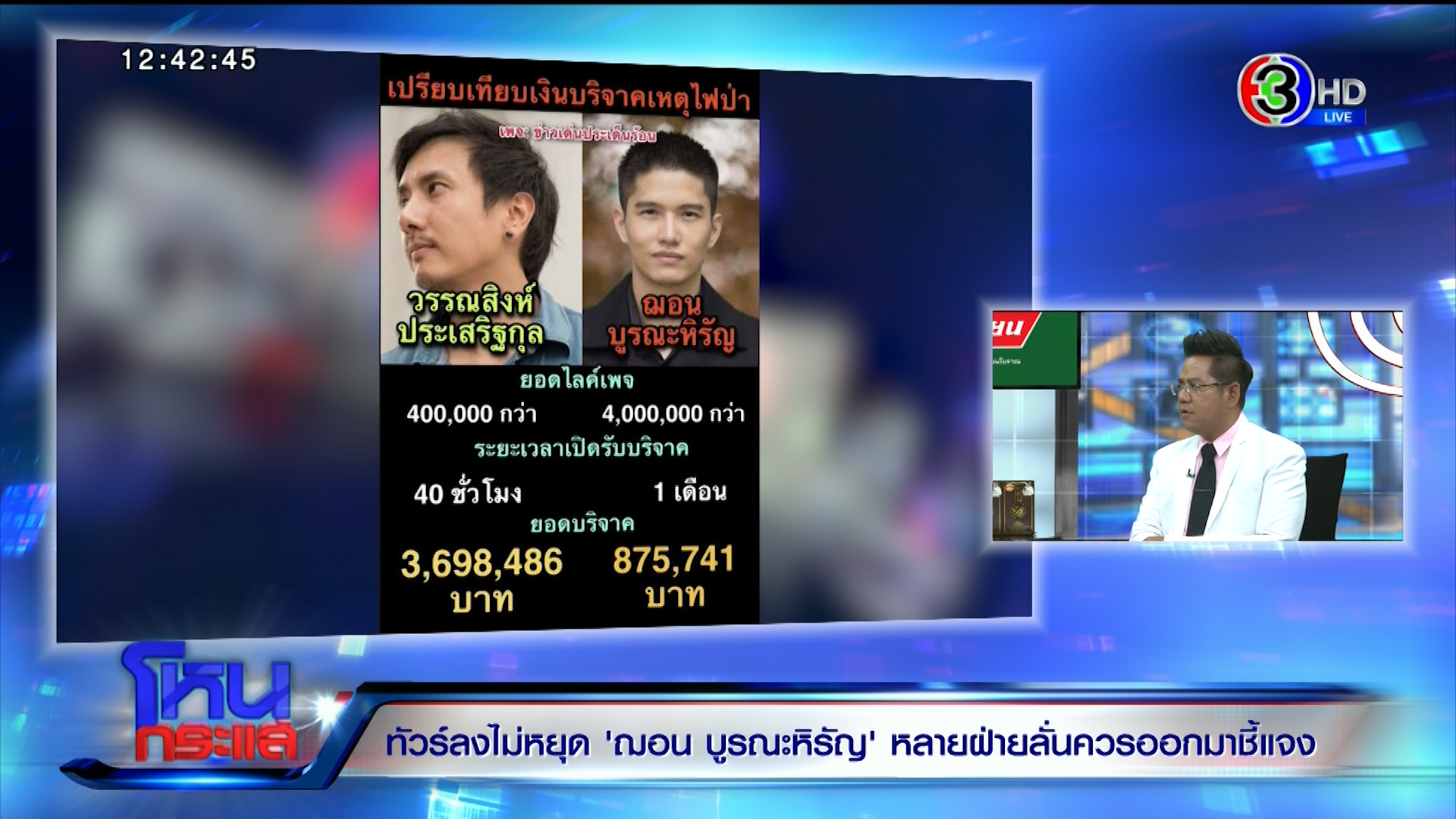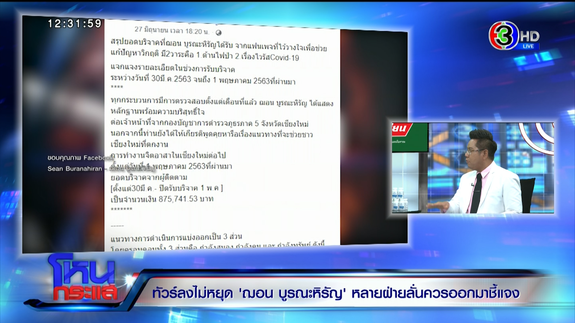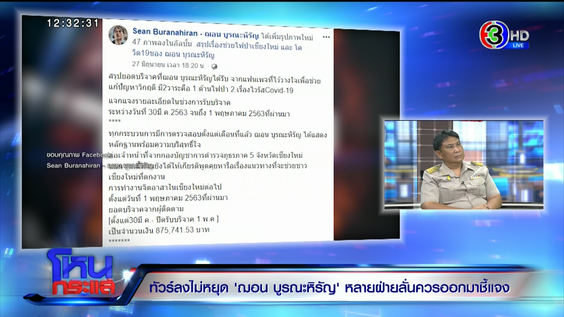 ทัวร์ลงไม่หยุด สำหรับ ฌอน บูรณะหิรัญ นักพูดสร้างแรงบันดาลใจชื่อดัง ที่ถูกโซเชียลโจมตี จากคลิปวิดีโอกิจกรรมปลูกป่าที่ จ.เชียงใหม่ ก่อนเอ่ยชม พล.อ. ประวิตร จนนำไปสู่มหกรรมขุดเรื่องเงินบริจาคดับไฟป่าที่โซเชียลจวกยับว่าใช้ผิดวัตถุประสงค์หรือไม่ ขณะที่เจ้าหน้าที่ยัน ยังไม่ได้รับความช่วยเหลือจากฌอน