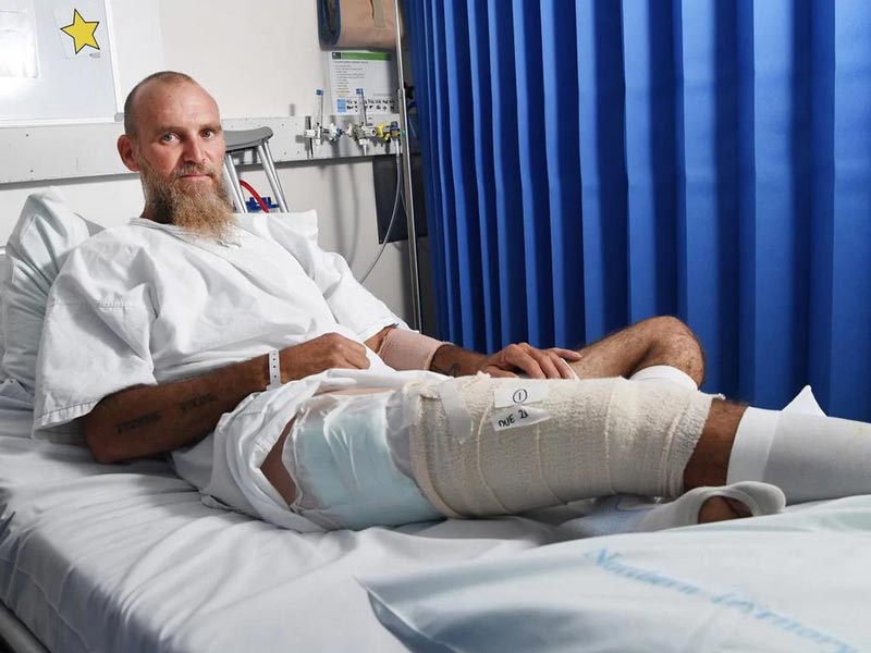 แพทย์พบว่าขาของเขาเป็นแผลเหวอะหวะหลายจุด ตรงต้นขาเป็นแผลใหญ่ขนาดเท่าฝ่ามือ เนื้อเกือบหลุดหายไป และยังมีแผลใหญ่ ยาวประมาณ 20 เซนติเมตรที่บริเวณก้น เขาถูกย้ายไปยังโรงพยาบาลอื่น และต้องเข้ารับการผ่าตัดเพื่อรักษาอาการบาดเจ็บดังกล่าว