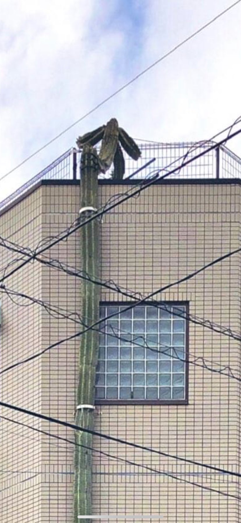 เมื่อเร็ว ๆ นี้ ผู้ใช้ Twitter ชาวญี่ปุ่น @0okome0 ทวีตภาพต้นกระบองเพชรที่เลื้อยยาวสูงเทียบชั้นดาดฟ้าของตัวอาคารที่มีความสูง 3 ชั้น ในย่านทากิกาวะ กรุงโตเกียว ประเทศญี่ปุ่น โดยปลายด้านบนที่หักเลื้อยไปบนชั้นดาดฟ้านั้น ชาวเน็ตต่างมองเป็นภาพเหมือนคนกำลังจะกระโดดข้ามรั้ว จนส่งผลให้ภาพต้นกระบองเพชรดังกล่าวกลายเป็นไวรัลไปโดยปริยาย