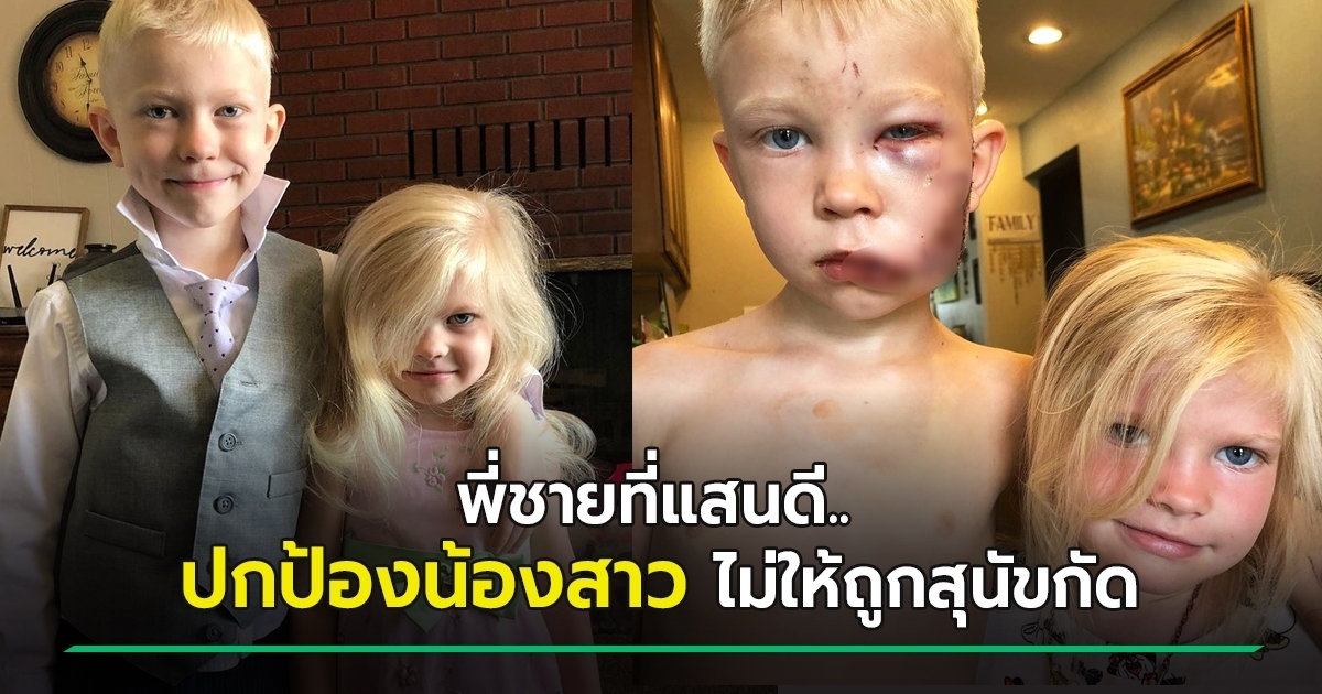เด็กชาย 6 ขวบ เอาตัวเข้าแลก ช่วยน้องสาวไม่ให้ถูกสุนัขทำร้าย ยอมเป็นฝ่ายโดนกัดจนหน้ายับ ลั่นถ้าจะมีใครตายก็ควรเป็นผม วีรกรรมนี้ แม้แต่เดอะฮัลก์ยังชื่นชม