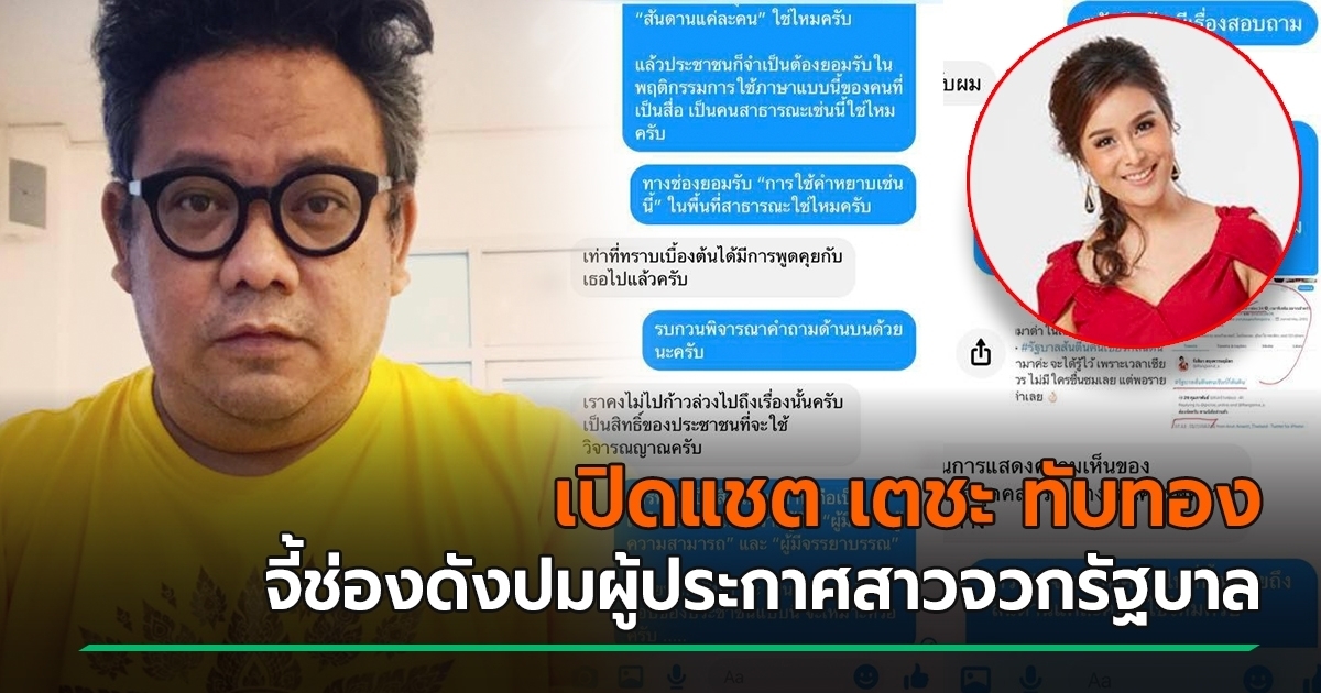 เตชะ ทับทอง เผยแชตร้องเรียนช่องดัง ลงโทษ รังสิมา ศฤงคารนฤมิตร ผู้ประกาศสาว ปมติดแฮชแท็กด่าแรงรัฐบาล ก่อนเจ้าตัวแถลงพักหน้าจอ