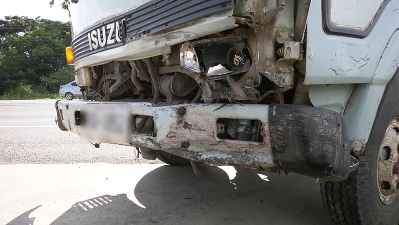 ส่วนรถคู่กรณีเป็นรถบรรทุก 6 ล้อ แบบดัมพ์ สภาพด้านหน้าซ้ายยุบเสียหาย มีรอยเลือดติดกับกันชน จากการสอบถาม นายอนัน อายุ 27 ปี คนขับรถดัมพ์ เล่าว่า ตนขับรถจากในหมู่บ้าน เพื่อจะขับข้ามไปเติมน้ำมันในปั๊ม ซึ่งอยู่เยื้องกับซอยที่ขับออกมา เมื่อเห็นรถว่าง ก็ขับข้ามถนนมาจอดกลางถนน 4 เลน แบบไม่มีเกาะกลาง เพื่อรอเลี้ยวเข้าปั๊ม ทันใดนั้นบิ๊กไบค์ของชายต่างชาติ วิ่งเข้ามาชนด้านซ้ายรถของตนอย่างจังแล้วไถลไปไกลกว่า 50 เมตร พร้อมยืนยันว่าตนขับมาถูกต้อง