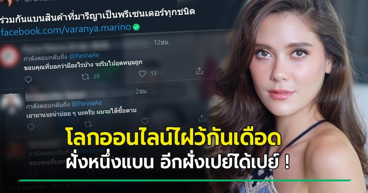 โลกออนไลน์ไฝว้กัน ฝั่งหนึ่งชวนแบนสินค้าที่ มารีญา เป็นพรีเซ็นเตอร์ หลังแสดงจุดยืนหนุนเยาวชนปลดแอก ด้านอีกฝั่งโต้กลับ ยิ่งแบนยิ่งต้องซื้อ ด้านมารีญาก็ทวีตถึงเรื่องนี้ด้วย