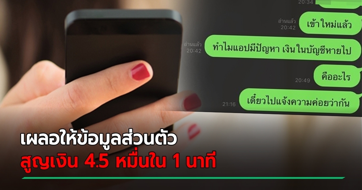 สุดท้ายสูญเงิน 4.5 หมื่นบาทภายใน 1 นาที