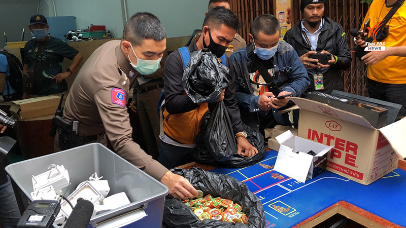 เปิดนาทีตำรวจคุมตัวพนักงานบ่อน ค้นตึกแถวฝั่งตรงข้ามบ่อนพระราม 3 พบ โต๊ะพนัน กล้องวงจรปิด และอุปกรณ์การเล่นพนัน ถูกขนมาซุกเอาไว้เพียบ ด้านชายชี้เป้าปิดปากเงียบ มีที่เก็บอื่นอีกหรือไม่ !