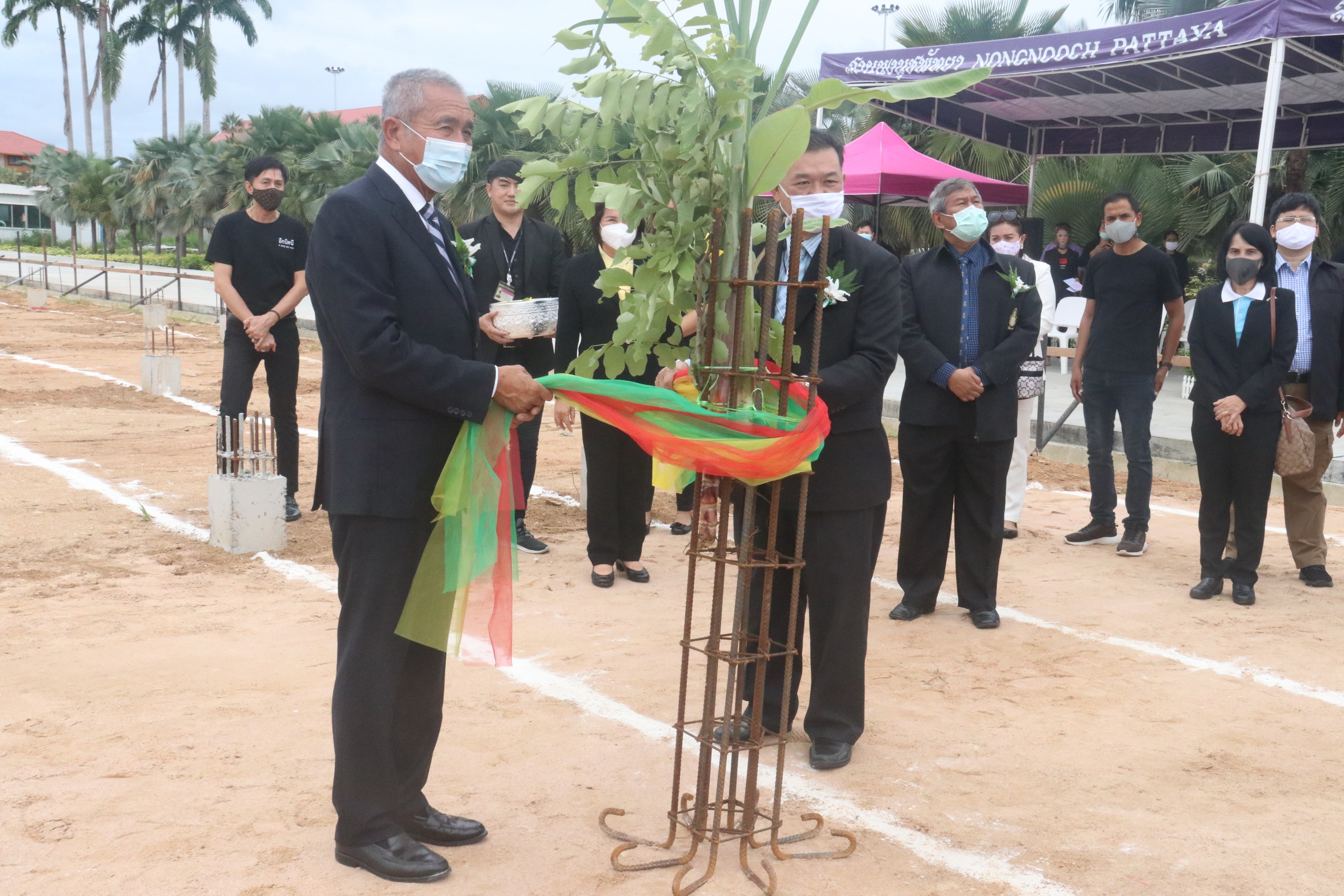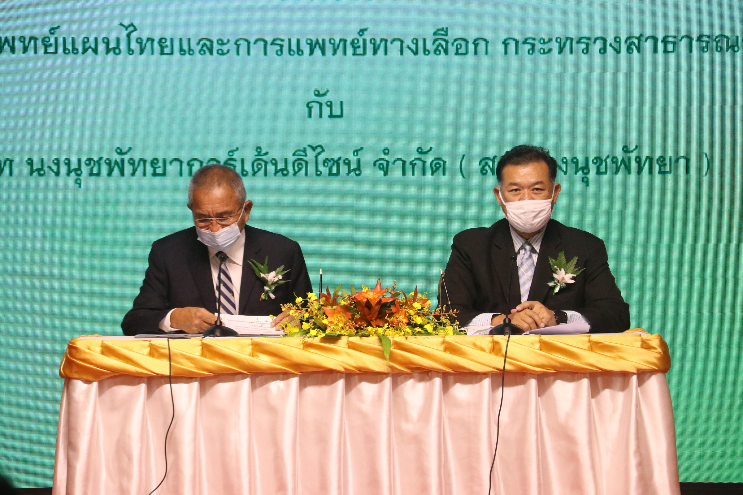 วันที่ 8 สิงหาคม 2563 ที่ห้องประชุมเก้าอารยธรรม บริษัท นงนุชพัทยาการ์เด้นดีไซน์ จำกัด นายมรุต จิรเศรษฐสิริ อธิบดีกรมการแพทย์แผนไทยและการแพทย์ทางเลือก พร้อมด้วย นายกัมพล ตันสัจจา ประธานสวนนงนุช พัทยา และนายเรวัต อารีรอบ ผู้ช่วยเลขานุการรัฐมนตรีว่าการกระทรวงสาธารณสุข ร่วมลงนามบันทึกข้อตกลงความร่วมมือ และยกเสาเอกอาคารโครงการวิจัยและพัฒนาสายพันธุ์กัญชา และกัญชง เพื่อใช้ประโยชน์ทางการแพทย์ ระหว่าง กรมการแพทย์แผนไทยและการแพทย์ทางเลือก กับ บริษัท นงนุชพัทยาการ์เด้นดีไซน์ จำกัด หลังจากเสร็จสิ้นพิธีลงนาม ได้เดินทางไปกระกอบพิธียกเสาเอกก่อสร้างโรงเรือนปลูกต้นกัญชาและกัญชง