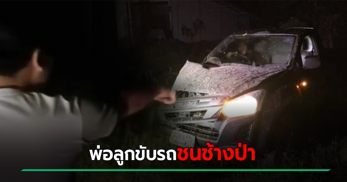 สองพ่อลูกขับกระบะฝ่าความมืด เจอช้างป่าเขาอ่างฤาไน