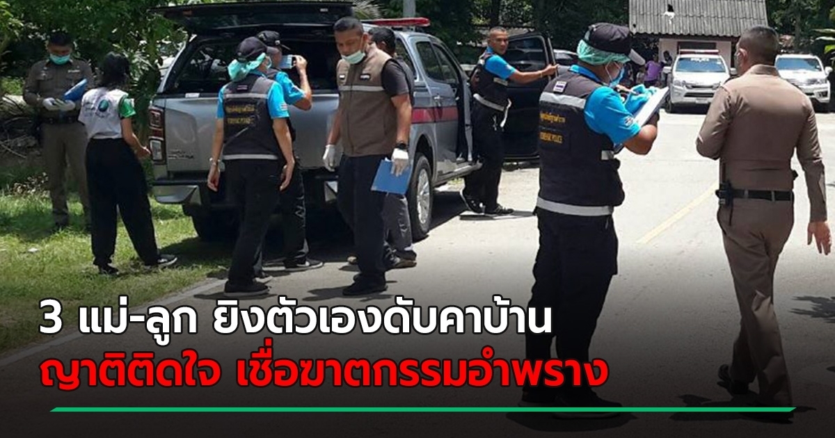 3 แม่-ลูก ยิงตัวเองดับคาบ้าน สาเหตุยังมีเงื่อนงำ ญาติติดใจ เชื่อฆาตกรรมอำพราง เพื่อนบ้านเผย คนแม่ป่วยซึมเศร้าแต่ไม่เชื่อว่าตัวเองป่วย เชื่อว่าป่วยเพราะไม่ได้ไหว้ครู