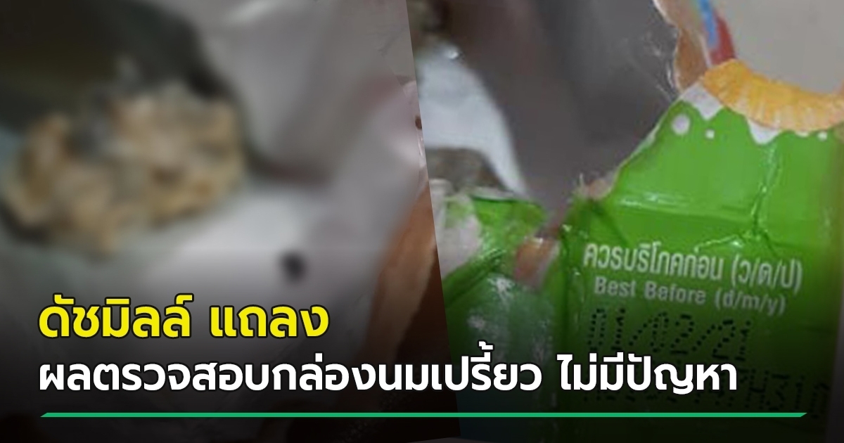 จากนั้น วันที่ 21 สิงหาคม ที่ผ่านมา ทางบริษัทได้ขอรับบรรจุภัณฑ์และสิ่งแปลกปลอมไปตรวจสอบในห้องปฏิบัติการทางวิทยาศาสตร์ แต่ลูกค้าไม่สะดวกให้นำกล่องนมและสิ่งแปลกปลอมกลับไปตรวสอบ จึงขออนุญาตดูกล่องบรรจุภัณฑ์ และตรวจเช็กในเบื้องต้นต่อหน้าลูกค้า พบรอยบุบชำรุด คล้ายตกกระแทก และมีนมซึมบริเวณมุมกล่องด้านบนและด้านล่าง ทำให้เกิดเชื้อรา