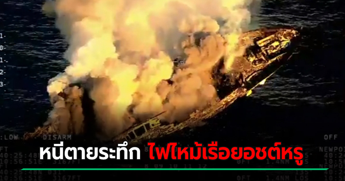 จากคลิปที่ถูกนำมาเผยแพร่ แสดงให้เห็นว่าเปลวเพลิงลุกท่วมอย่างรวดเร็ว กลุ่มควันดำลอยโขมงขึ้นสู่ท้องฟ้า เพลิงโหมไหม้เผาทำลายเรือหรูทั้งลำกลายเป็นซากความเสียหายที่น่าสะพรึง ก่อนจะจมดิ่งลงก้นทะเลในที่สุด