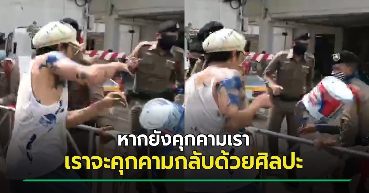 เปิดนาทีเดือดสุด แอมมี่ The Bottom Blues สาดกระป๋องสีใส่ตำรวจ สน.สำราญราษฎร์ อ้างเป็นการตอบโต้ที่ตำรวจคุกคามประชาชน