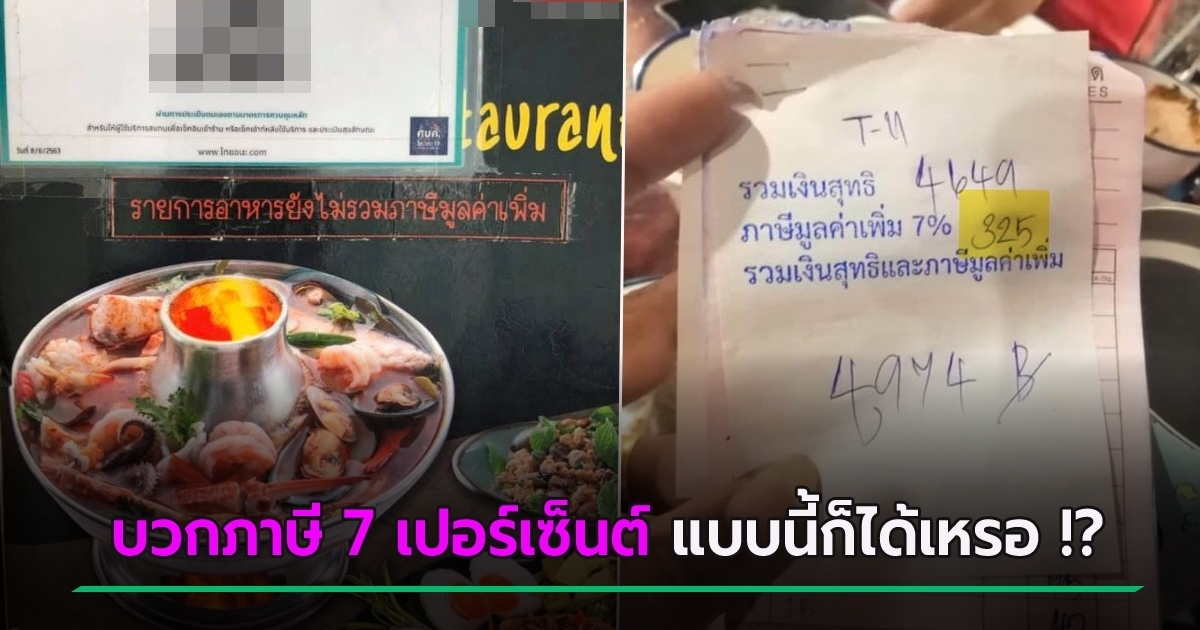 ลูกค้าเป็นงง กินที่ร้านอาหารดัง จ.บุรีรัมย์ เช็คบิลเจอเก็บภาษีมูลค่าเพิ่ม 7 เปอร์เซ็นต์ โลกออนไลน์มึน แบบนี้ทำได้ด้วยหรือ ?