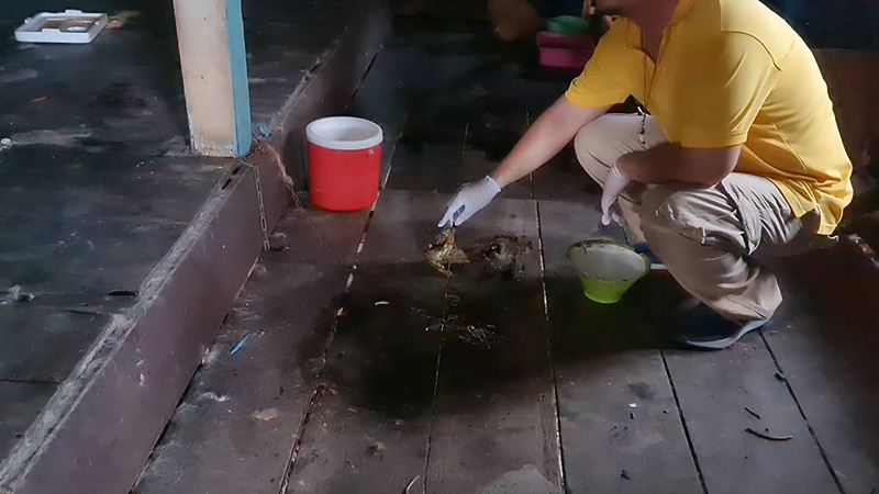 หลังจากได้รับแจ้งนายณัฐพงษ์จึงเดินทางไปตรวจสอบ พบเป็นบ้านไม้ชั้นเดียวใต้ถุนสูง ชั้นบนพบซากสุนัขขนาดเล็กถูกล่ามโซ่ตายคาบ้าน มีร่องรอยเศษกระดูกกระจัดกระจายอยู่ คาดว่าจะถูกสุนัขกินกันเอง
