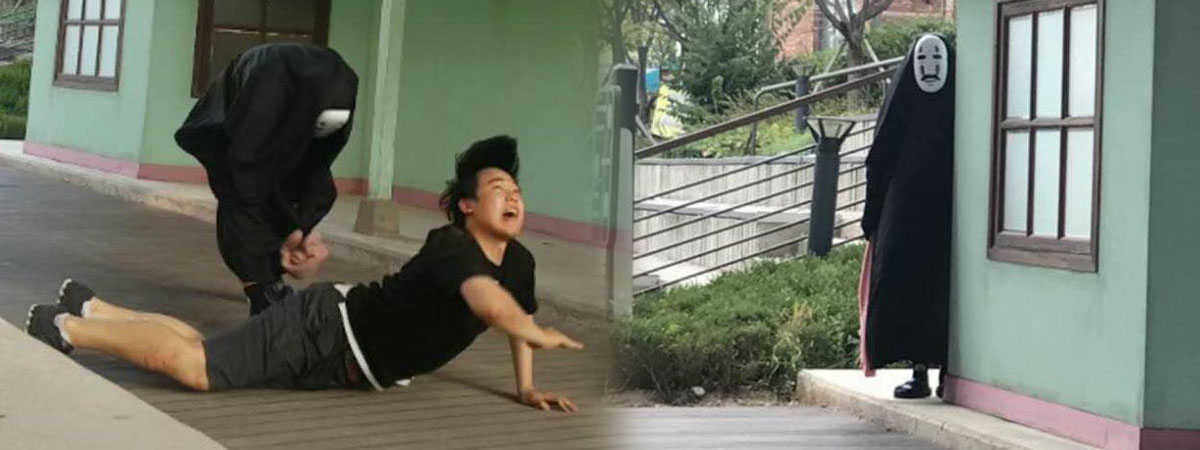 เปิดภาพแกล้งคน ที่เป็นกระแสในโลกโซเชียล แต่งคอสเป็นคาโอนาชิ แกล้งไล่ตีหนุ่มเกาหลี