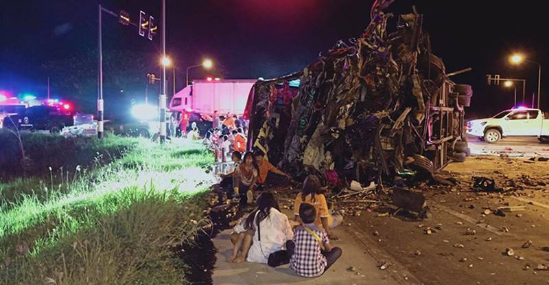 คนขับหลับใน พุ่งชนรถพ่วง 22 ล้อ ดับ 7 ราย เจ็บ 40 ทุกคนในรถเล่าระทึก