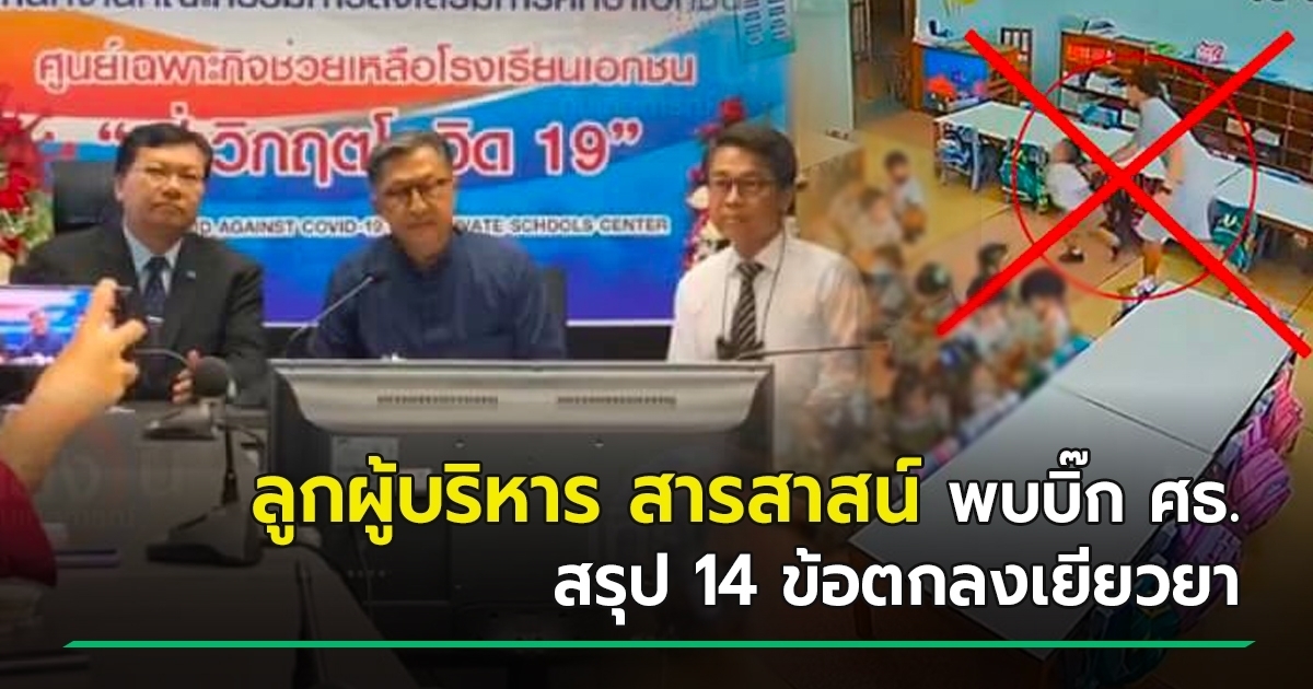 พิสุทธิ์ ยงค์กมล ลูกผู้ก่อตั้งโรงเรียนสารสาสน์ พร้อมผู้บริหาร เข้าแจง ศธ. ปมครูทำร้ายเด็ก สรุปแนวทางแก้ไข เยียวยา 14 ข้อ